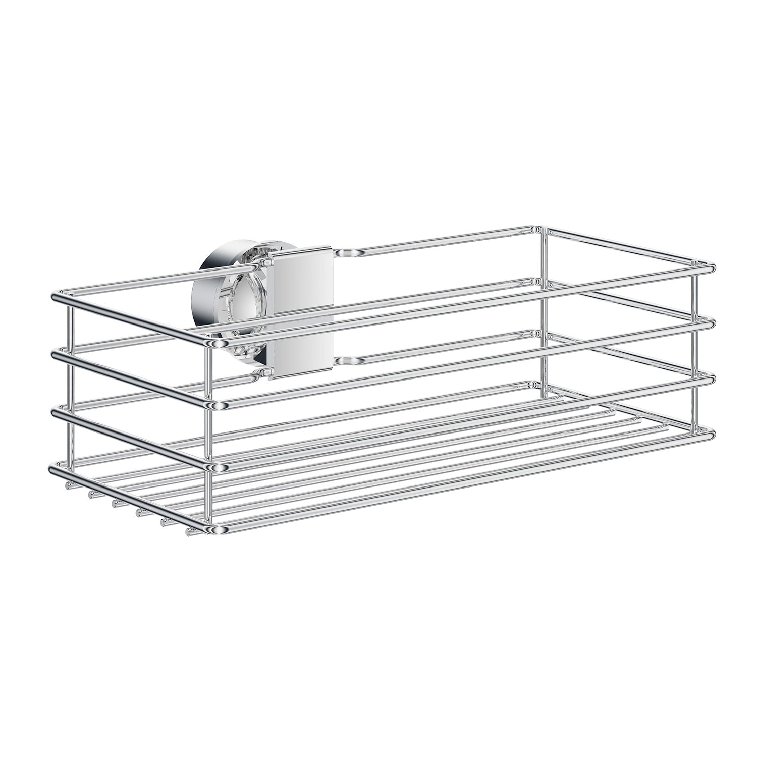 BESLAGSBODEN Korb für Duschstange. Verchromt. Korb 250 x 120 mm. Höhe 72 mm. Tiefe 175 mm. Passend für Stangen mit einer Dicke von 18 – 24 mm.